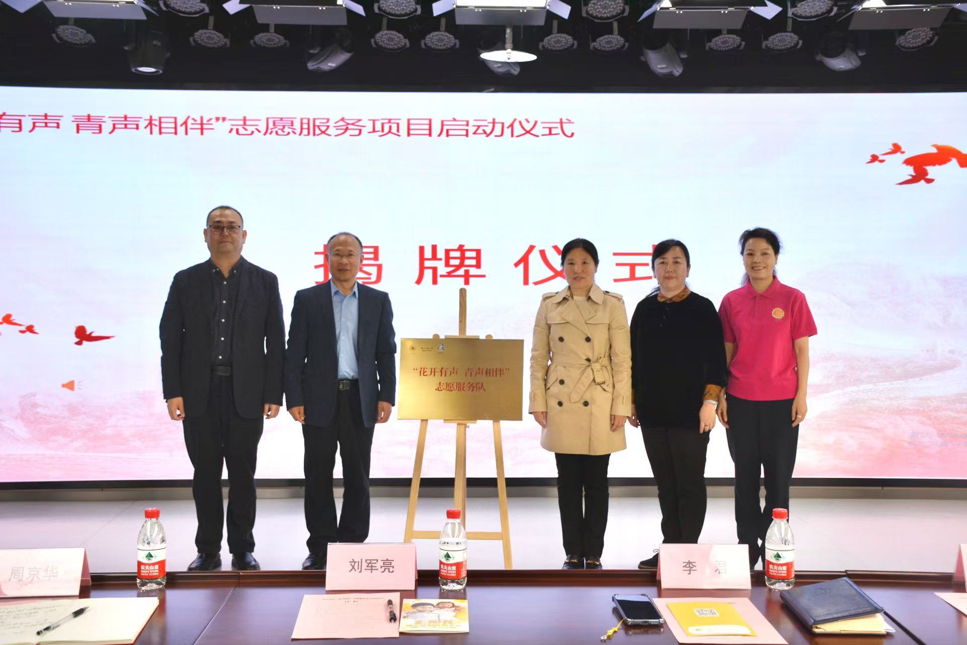 在全体见证下,李君、刘军亮、周京华、朱梅共同为志愿服务队揭牌,携手开启青年员工志愿者关爱听障群体的温暖旅程。